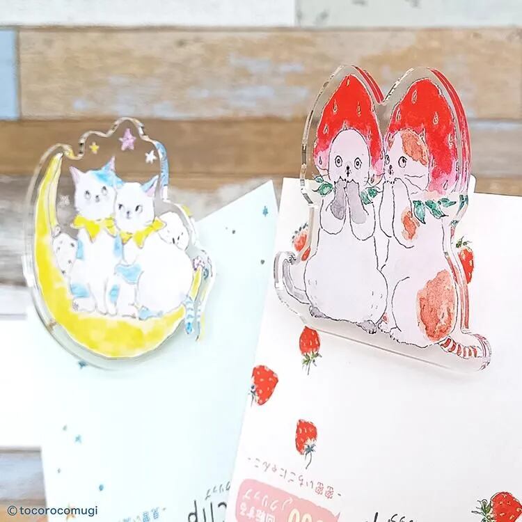 くるくる見習い流れ星にゃんこのアクリルクリップ