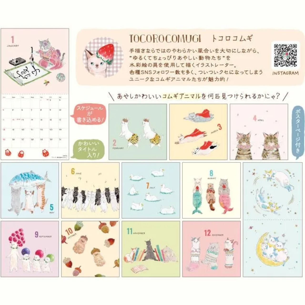 トコロコムギが描く“ゆるくてちょっぴりあやしい動物たち”のユニークなワンシーンがたっぷり詰まったカレンダーです。