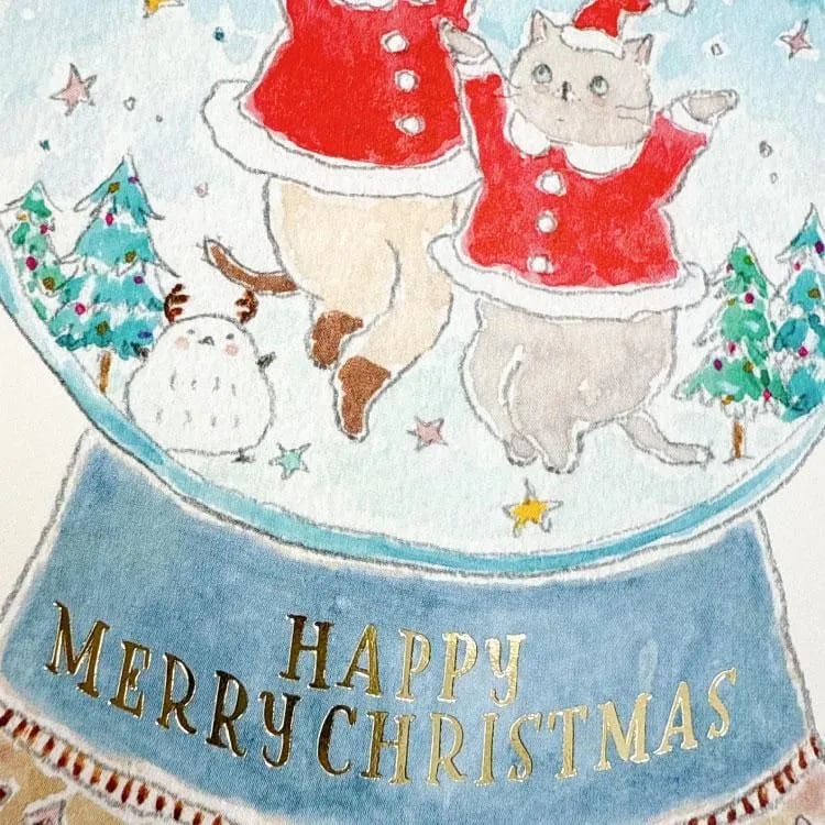 おめかししたにゃんこ達がクリスマスを楽しくしてくれる、贈るのはもちろんコレクションにもおススメな、金箔を施した華やかなポストカードです。