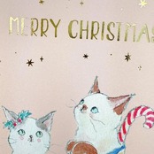 おめかししたにゃんこ達がクリスマスを楽しくしてくれる、贈るのはもちろんコレクションにもおススメな、金箔を施した華やかなポストカードです。