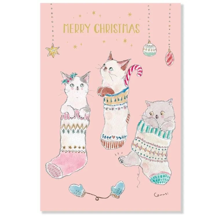 クリスマスくつ下にゃんこのクリスマスポストカード