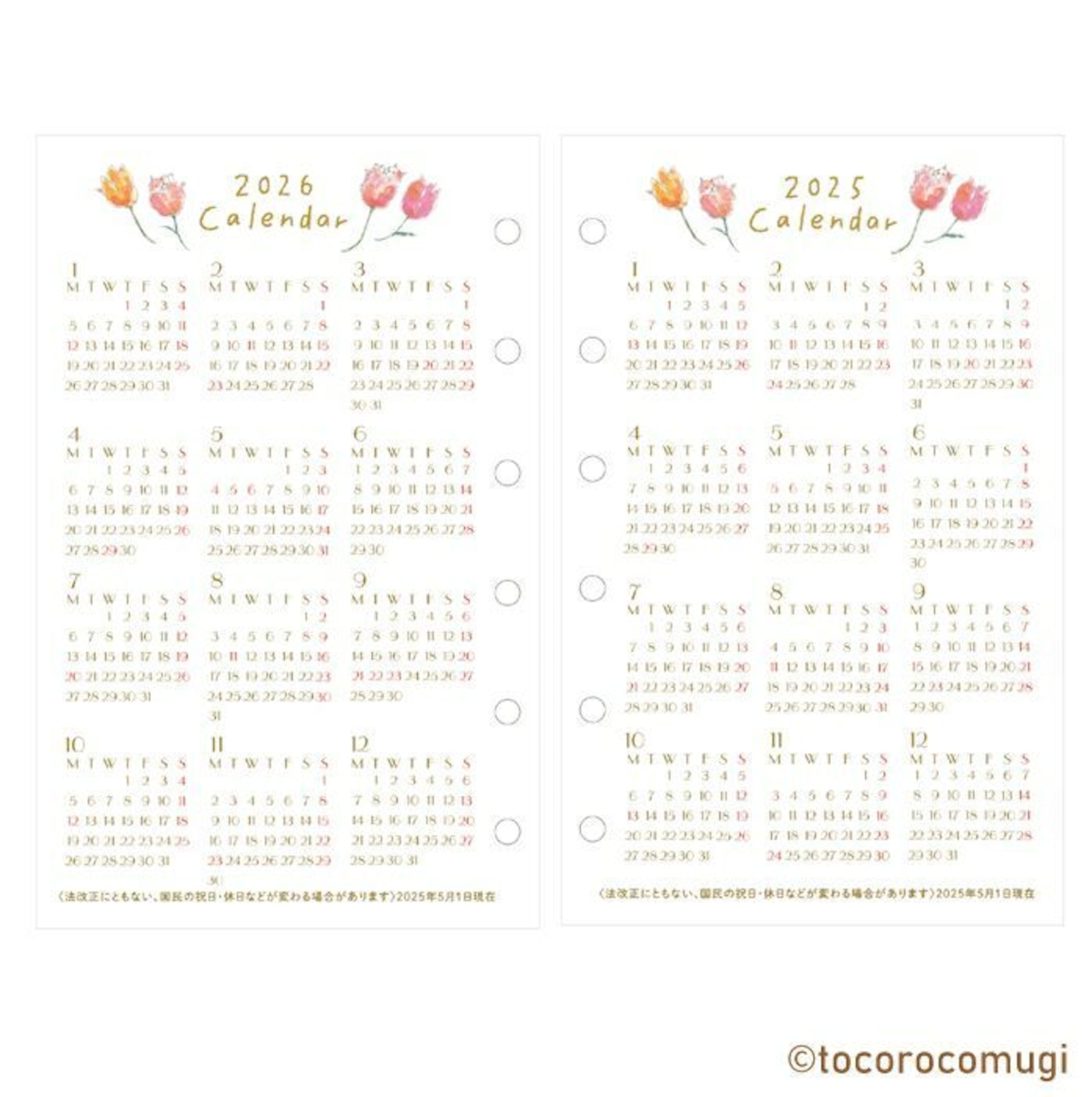 システム手帳に挟めるリフィルカレンダーが可愛いデザインで登場しました。