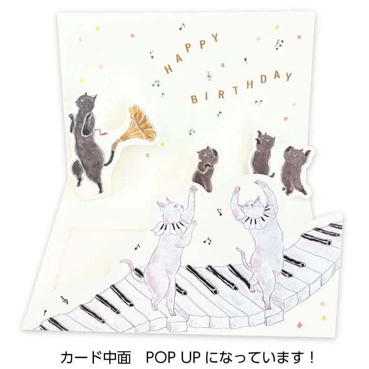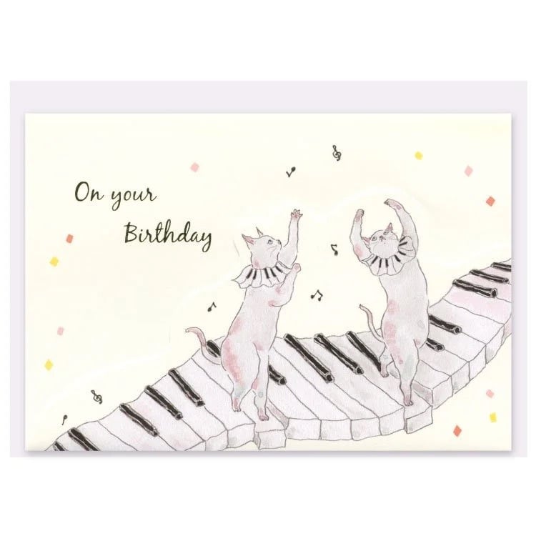 ピアノにゃんこのグリーティングカード(バースデー)